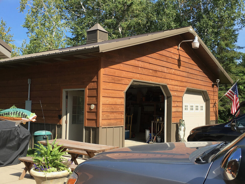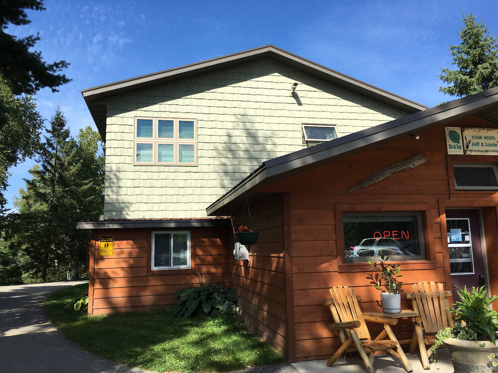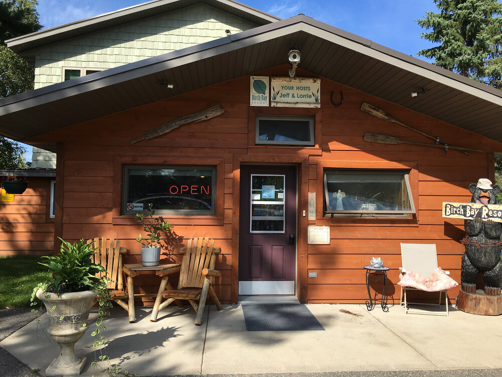 The office is on the road side of the resort. A 2 story completely remodeled home is on the back side of the office. Upstairs used to have 3 bedrooms and a bathroom; the remodel converted it to a large master suite, complete with jacuzzi, steam shower, gas fireplace, large windows overlooking the lake, walk in closet with washer and dryer. A huge covered deck is accessible from upstairs.
